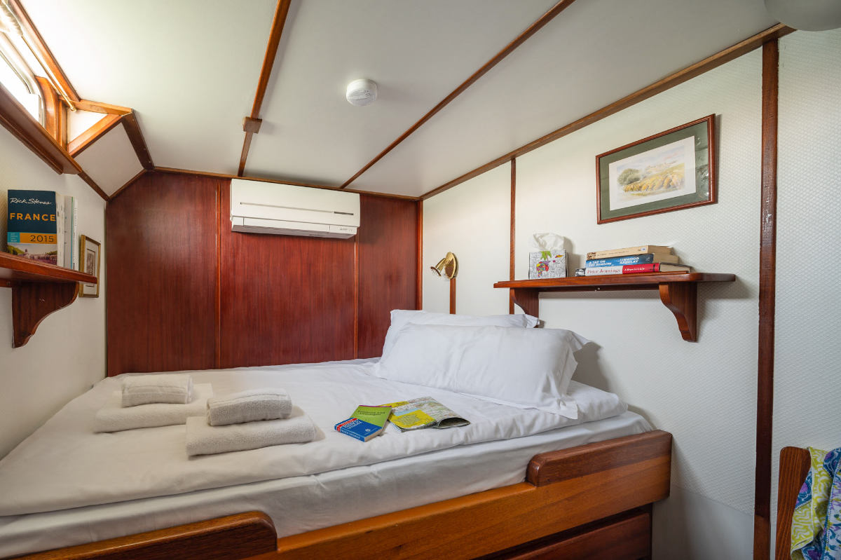 The Caprice is a beautiful Dutch boat that has been in operation since 2009. It’s freshly varnished wood and bright colors will welcome you. The large sun deck is inviting, and nothing is better than sitting comfortably while cruising the canals of France.