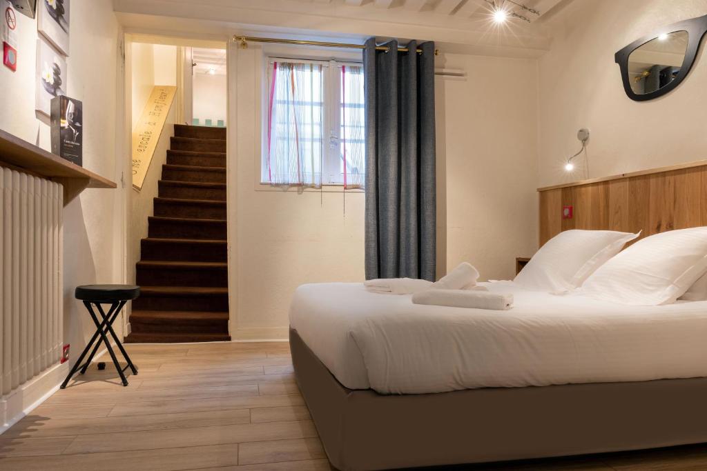 The Hôtel Du Dauphin extends over 3 wooden houses from the 17th century without elevator, characteristic of Honfleur.