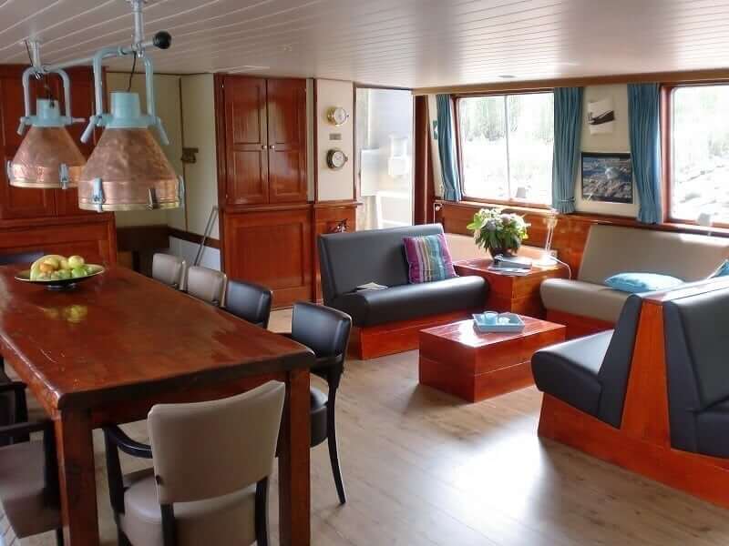 In 2000 La Mar was converted from a cargo ship into a modern and spacious passenger ship, especially for boat and bike tours in the Netherlands and Belgium. In the winter of 2012/2013 the ship has been completely renovated. On the upper deck, there is the air-conditioned lounge, a spacious sitting area with wide screen TV, a cozy bar and a large sundeck. Wi-Fi is available. The sundeck is the ideal place to drink a cup of coffee or an aperitif and to enjoy the scenery while cruising. The meals of excellent quality are served in the air-conditioned dining room, located on the lower deck.