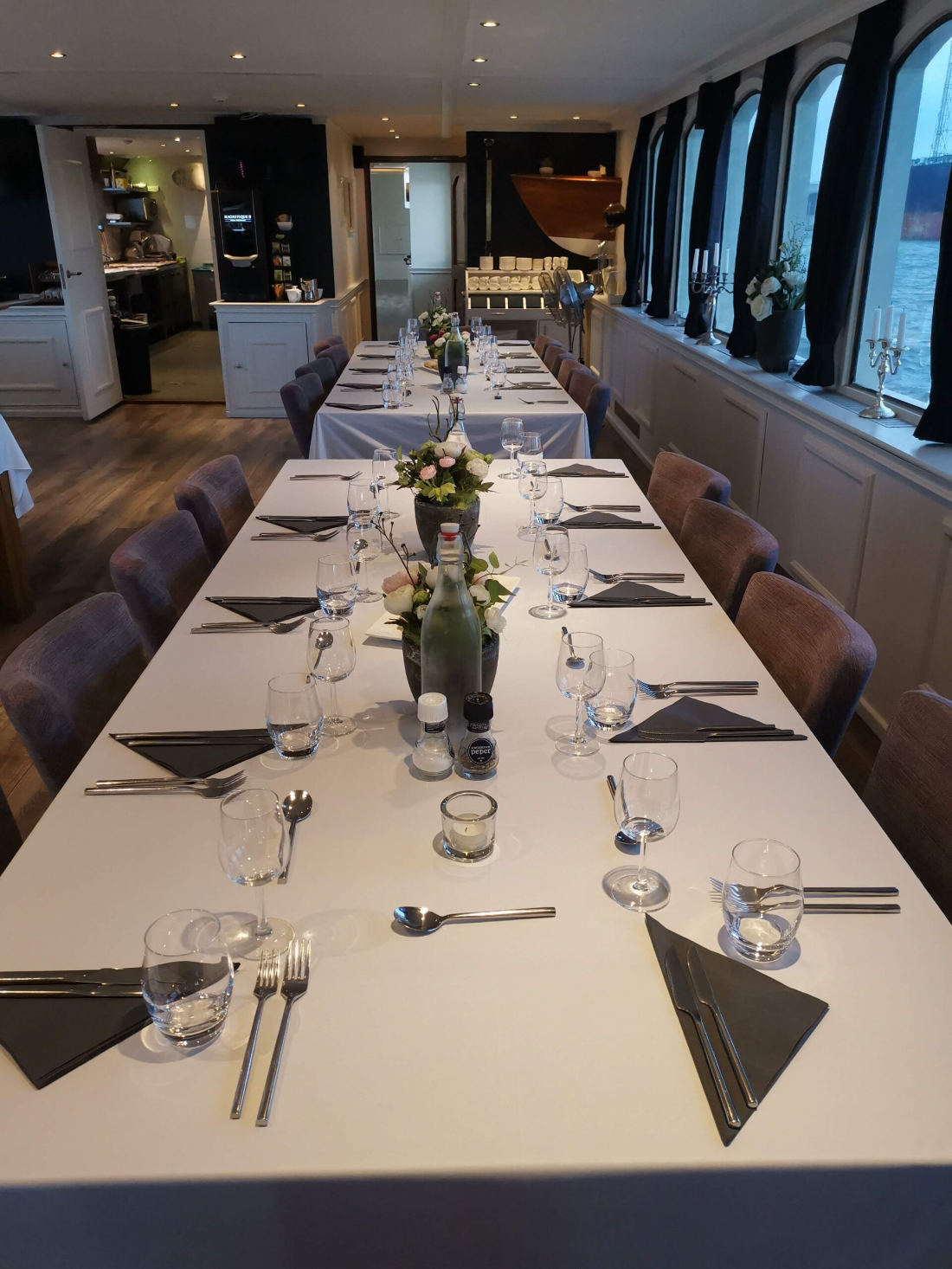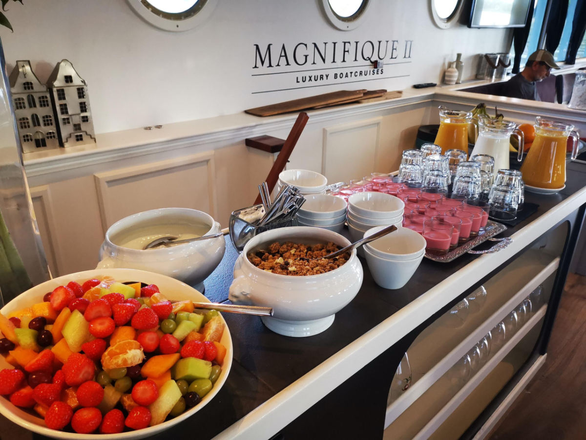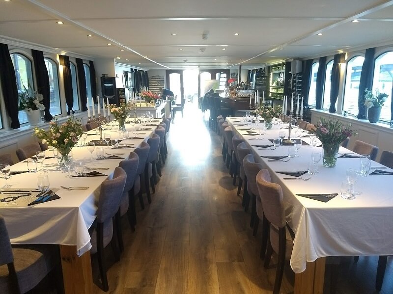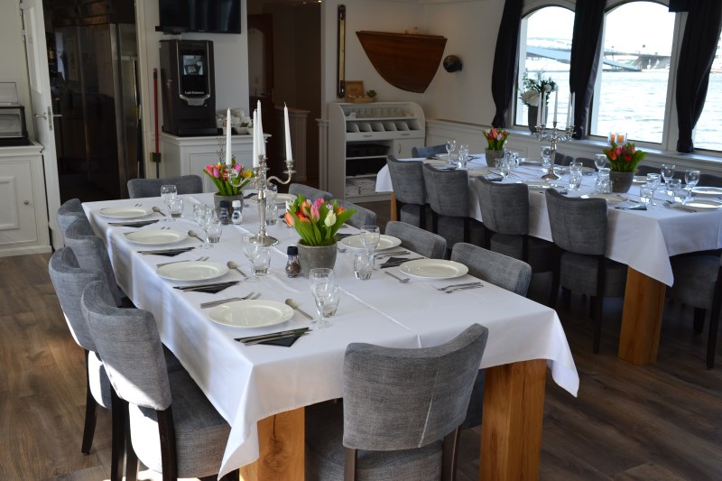 The premium ship Magnifique II has been constructed in 2016 and has set new standards for comfort. The Magnifique II is a very popular ship on several tours in The Netherlands and Belgium. The upper deck has a large, tastefully furnished and spacious salon with air conditioning, a restaurant area, a beautiful bar and a lounge area with cozy sitting area, a wide screen TV and large panoramic windows. The Magnifique II has a beautiful, partly covered teak wooden sun deck with chairs and tables on the aft deck and a cycle storage on the front deck. On the top deck, the barge has a whirlpool/Jacuzzi and some deckchairs to relax while you enjoy the scenery when cruising.