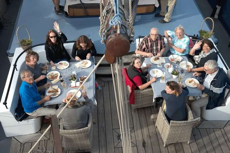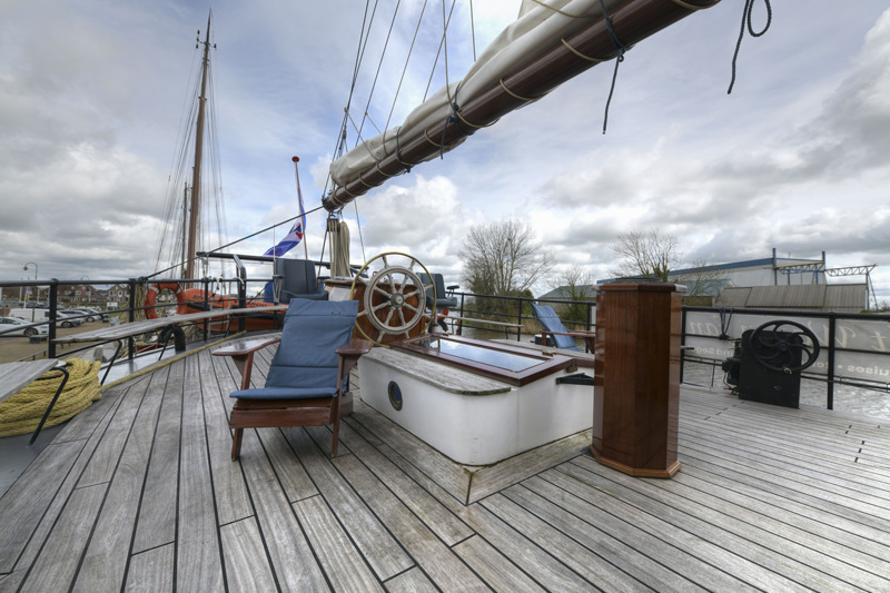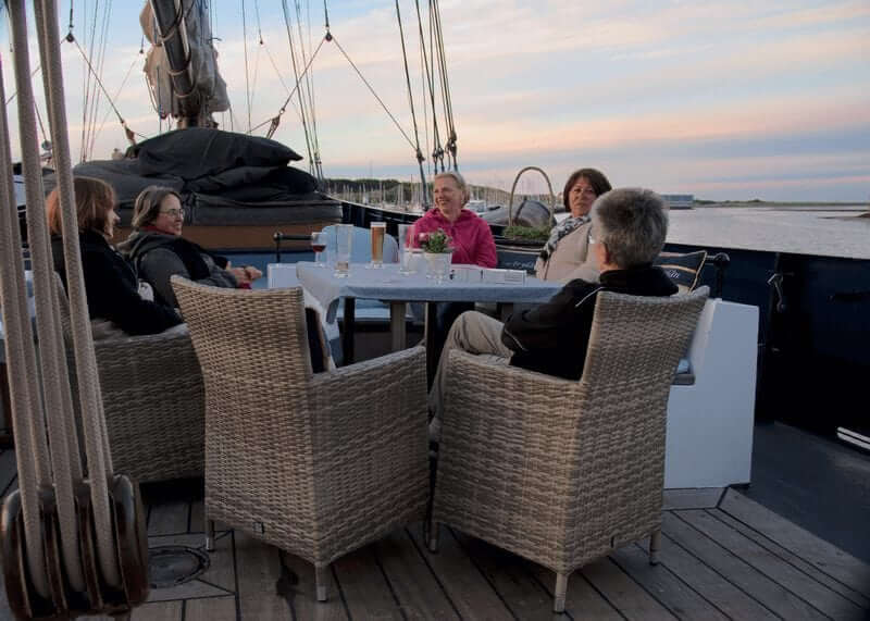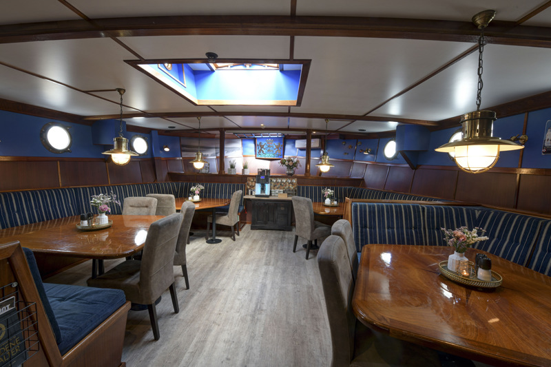With its 55 metres of length, the Wapen fan Fryslân is the largest two-master schooner on the Dutch waterways. In 1965 the sailing ship was launched as a cargo ship, transporting all kinds of freight throughout the Netherlands, Germany and Belgium. In 2003 the ship was completely transformed into a sailing passenger ship. On board of this marvellous ship you will immediately notice its warm and luxurious atmosphere. The Wapen fan Fryslân is owned and operated by Erik van Aken and is sailing the Frisian Sea Tour.