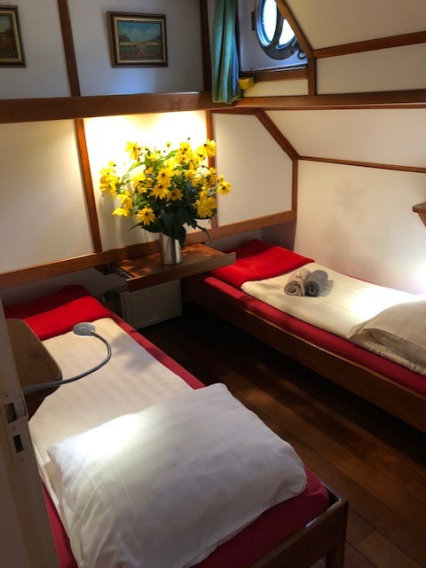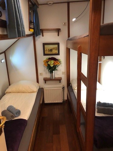There is limited storage space in the cabin. We recommend 1 suitcase per person. You can slide the suitcase under the bed. The Zwaan is known for the high quality of the meals and the friendly atmosphere on board. The crew consists of the captain, chef and hostess for 14/15 guests.