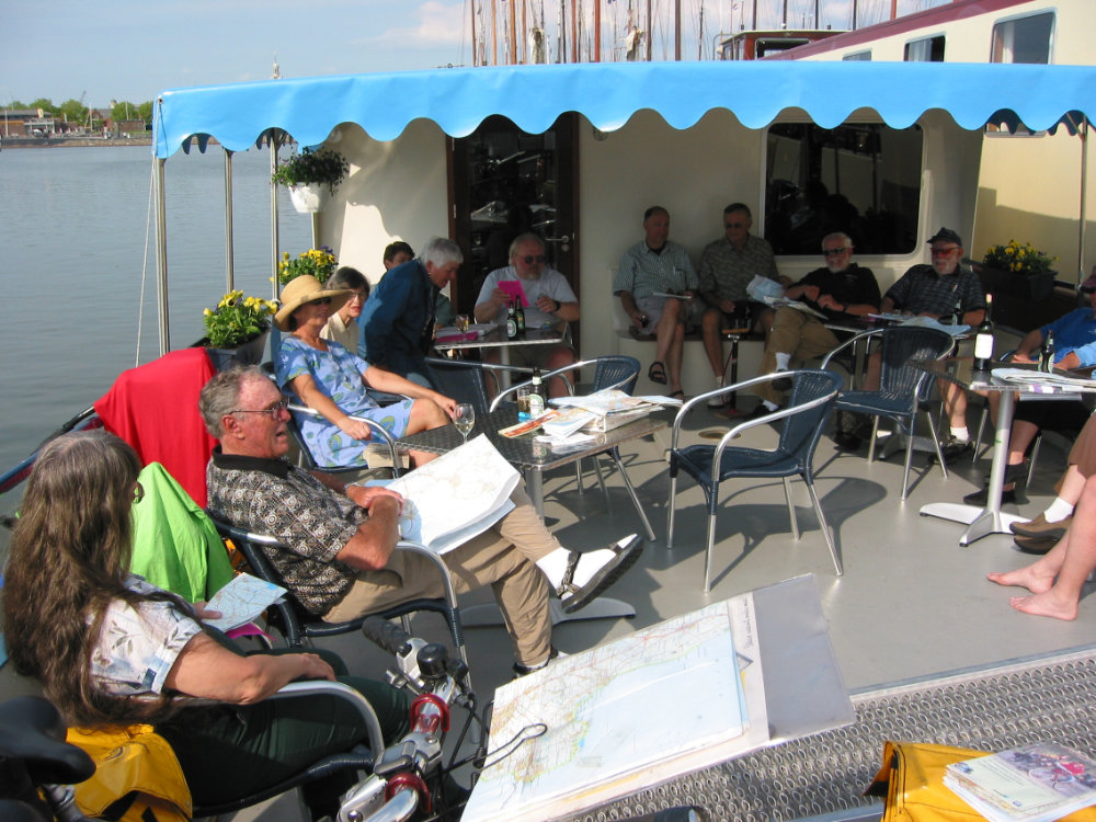 The cook prepares all meals: a substantial breakfast and a three-course dinner of very good quality. A packed lunch may be prepared after breakfast. Tea and coffee will be ready when you arrive on board in the afternoon. There’s a bar on the boat with beer, wine, and soft drinks at reasonable prices. If you have special meal requirements, please mention this when booking. In the case of a Vegetarian and gluten-free diet there is an additional charge of €50 per week. You’ll need to pay this cash on board.