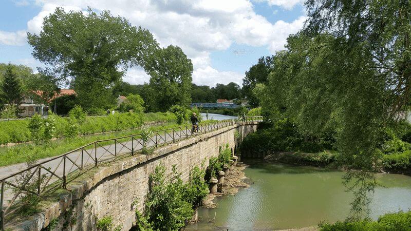From here, the route continues along the river to Dormans, a peaceful village with a castle and memorial chapel dedicated to the Battle of the Marne during World War I.