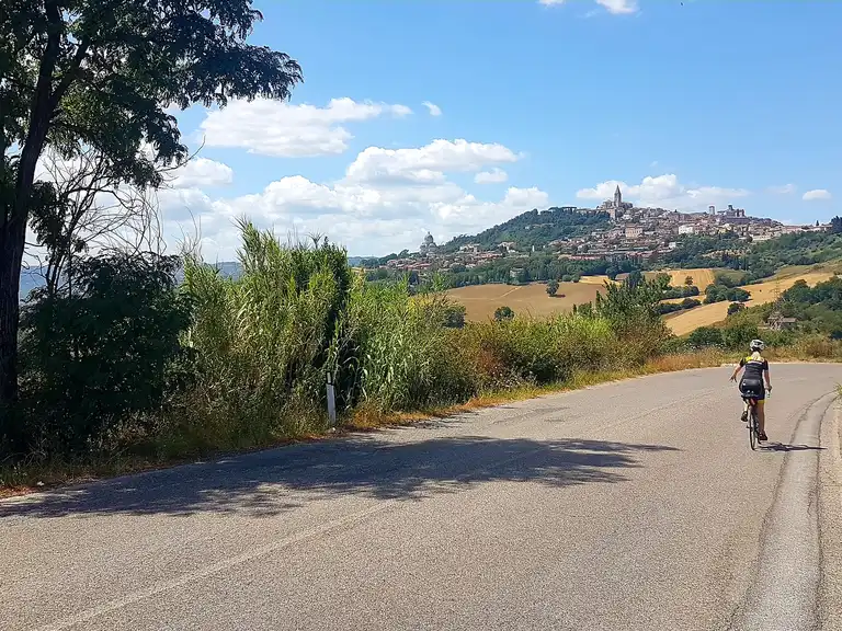 Today you’ll cycle through beautiful olive groves along a ridge with delightful views to the small town of Spello, a perfectly preserved town still encircled by Roman walls on the Subasio slopes. Later you’ll ride through olive groves with no major uphills except for the final climb back to Assisi. On the return trip you can visit Bevagna, going through the most famous wine area of Umbria, the Montefalco Sagrantino “Denominazione di Origine Controllata e Garantita” (DOCG). Alternatively, you could decide to stay in Assisi today and have more time to explore the fabulous “pink city.”