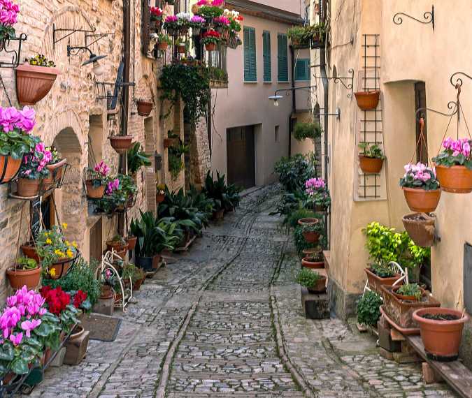 Your first stop is Deruta, world-famous for its beautiful ceramics that have been crafted here for centuries. Take a little time to wander through its charming streets and browse the many workshops filled with colorful hand-painted pottery.